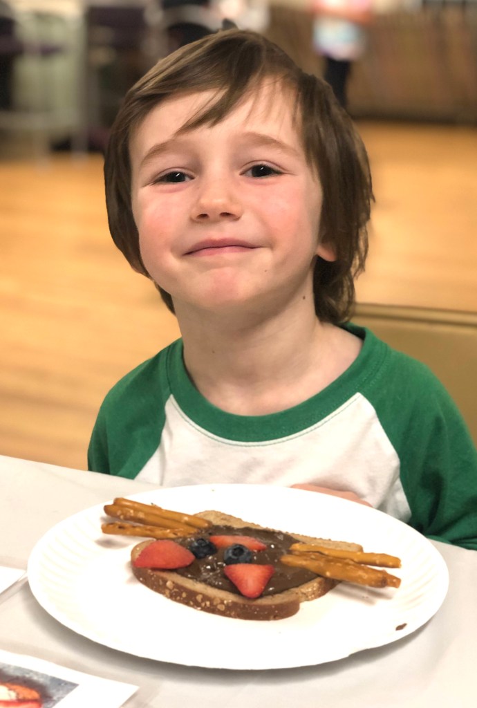 At our January Cloverbuds meeting, the children loved playing with their food! We worked on food art at this meeting to help prepare members for the upcoming Merrimack Valley 4H Food Show. Cloverbuds made teddy bear toast, bugs on a log, and other one-of-a-kind creations with healthy food options like rice cakes, cream cheese, sunbutter, fruits and veggies. Members also created beautiful place-setting designs. We also constructed 3-D food structures using toothpicks, mini marshmallows, and cheese squares. This meeting was a blast! Everyone had a great time trying new healthy foods and expressing their creativity!