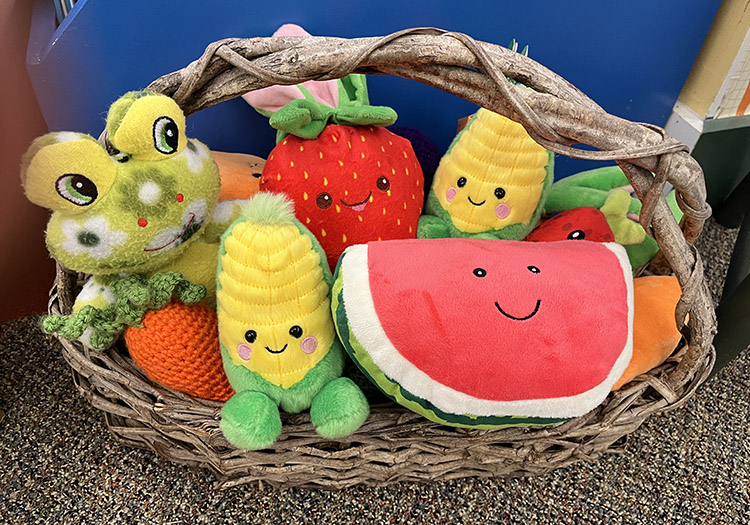 Have your kids or grandkids discovered the basket of plush and crocheted fruits and veggies by the circulation desk in the Elkins Library? They are by the wall with the carrot wallpaper, right around the corner from the jigsaw puzzle table. These soft friends are just waiting to be played with, hugged, counted, and carried around. NEW this week we have added Wally the Watermelon! All we ask is that they end up back in the basket for the next small person to play with.*